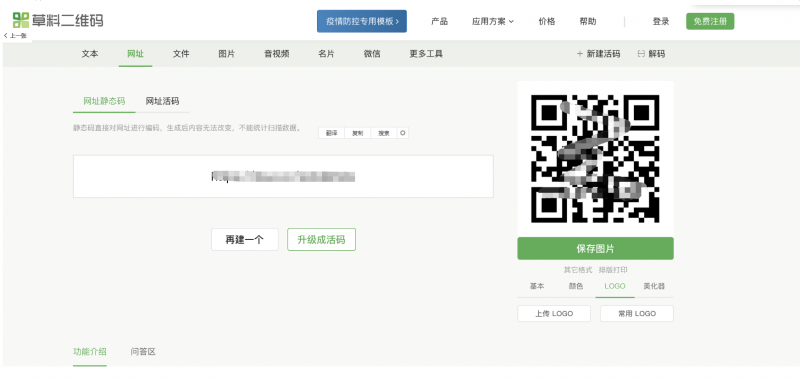 使用草料二维码等网址生成二维码工具将短连接转化为二维码