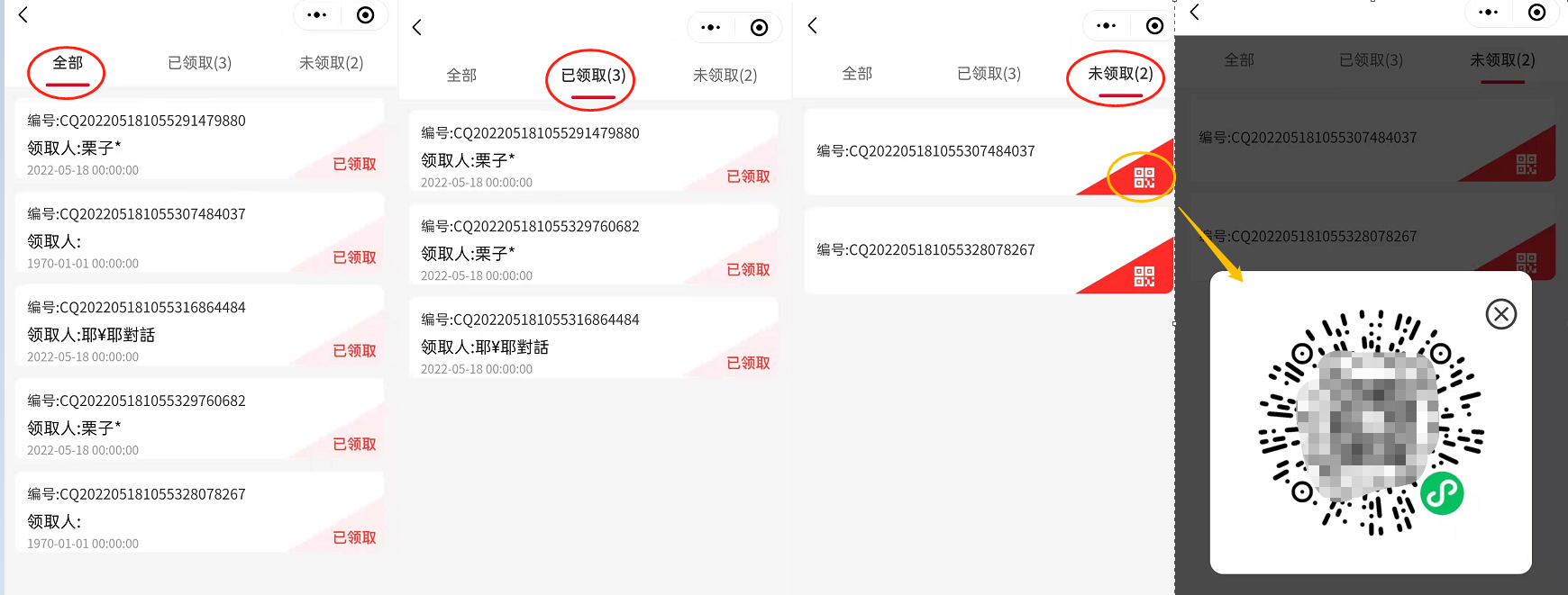 注:用户扫码即自动领取优惠券,点击领取按钮跳转到指定商品的商品详情页,如果该二维码被扫过了,二次扫码自动跳转到指定商品的商品详情页并提示优惠券已被领取