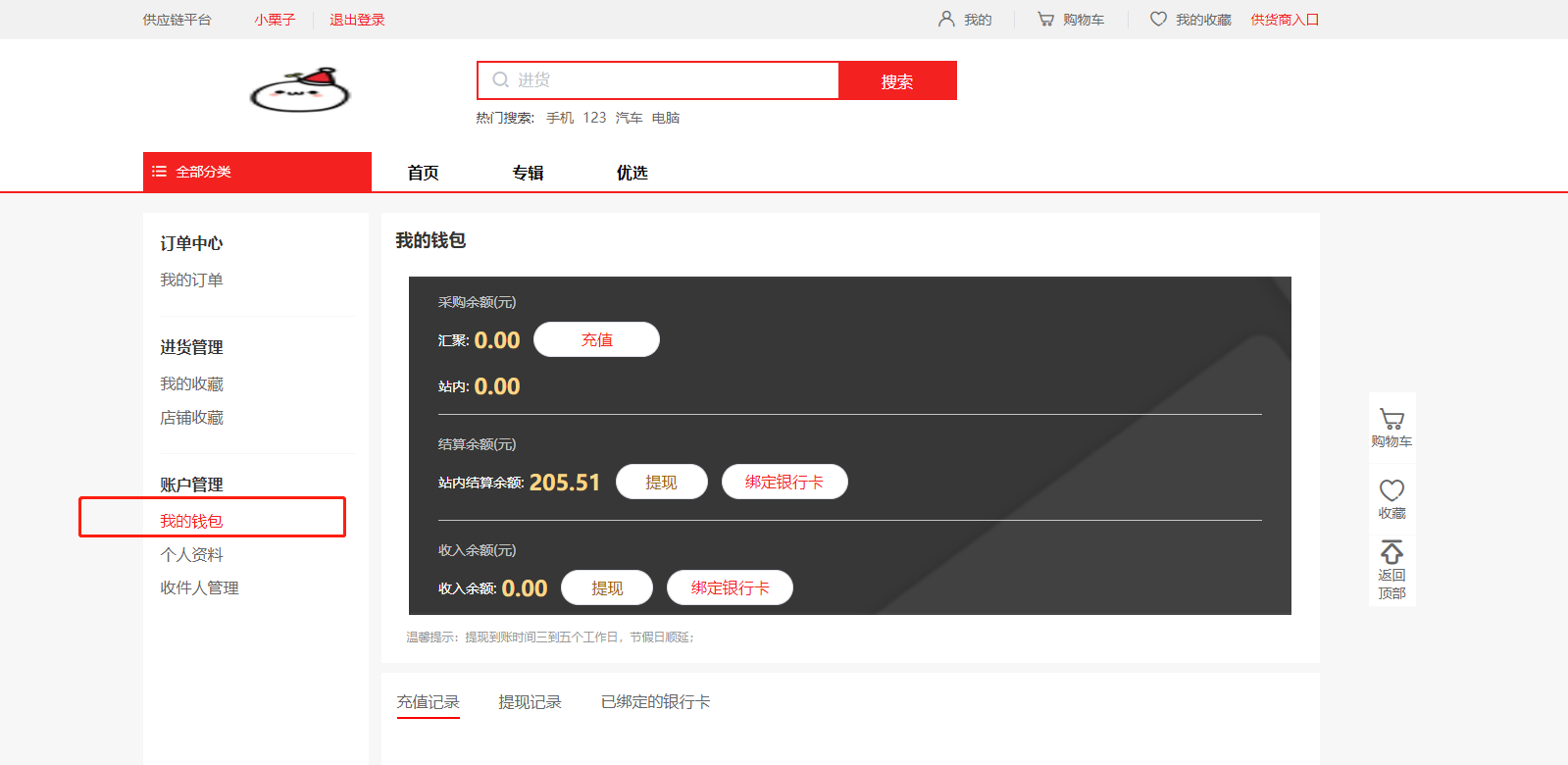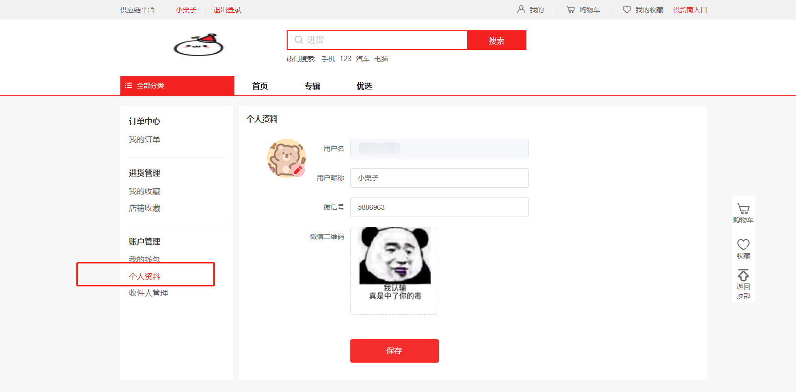 2)在这里可以看到收藏商品,收藏店铺的数量,以及余额和一些订单信息。