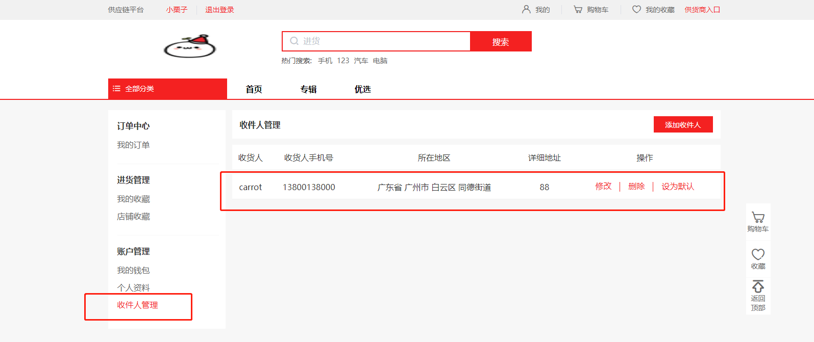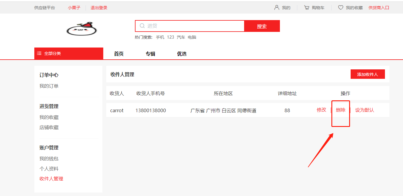 3)批量下单的表格上传后会执行批量下单,如果有错误的信息,会有提示,可以重新编辑,或者一键删除错误信息