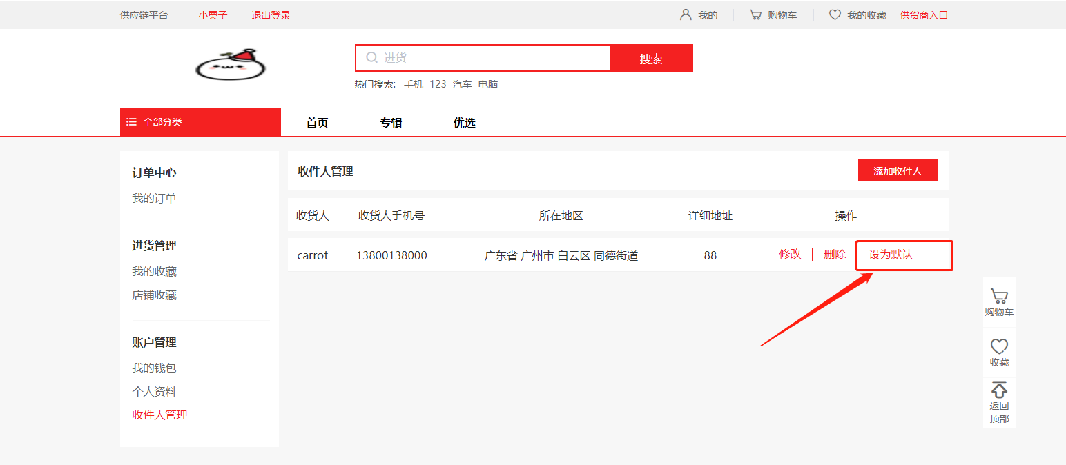 3) 右侧悬浮导航栏中的收藏,点击之后会进入商品收藏列表。