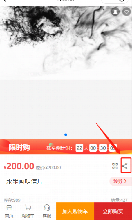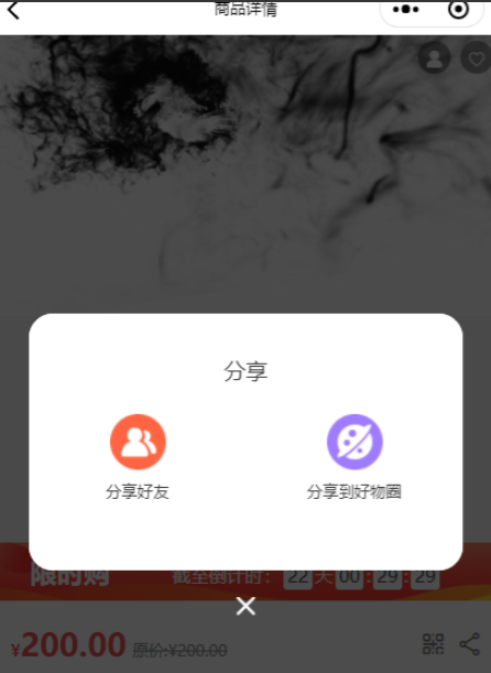 在小程序商品详情点击分享图标后 弹窗可以选择分享好友或者分享到好物圈