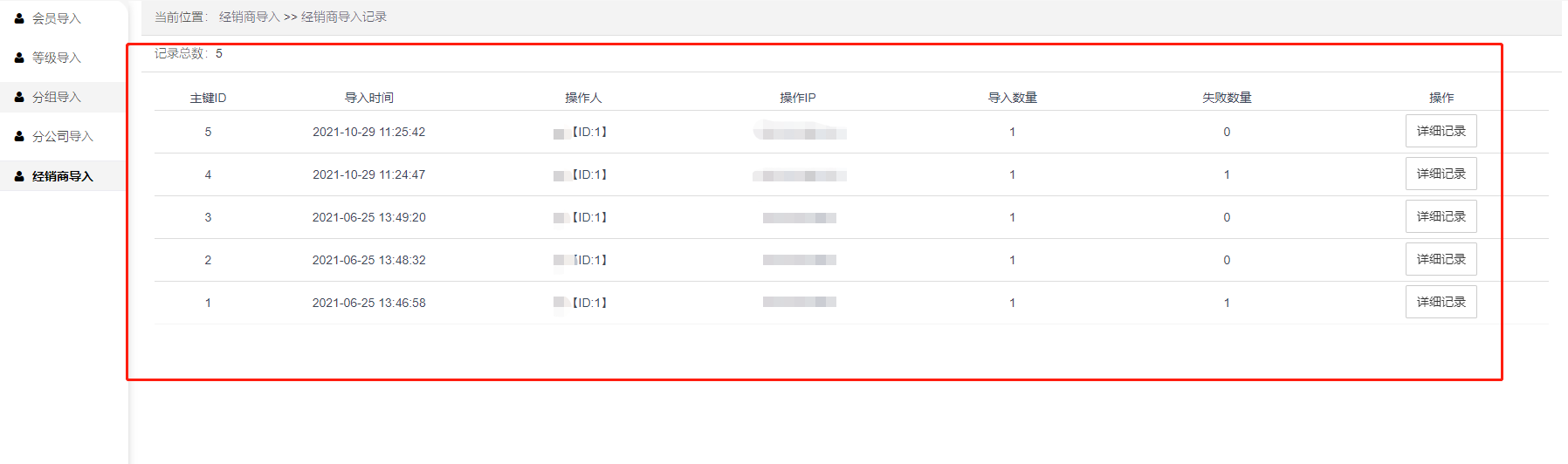 5、经销商导入:可以按会员ID或会员手机号,给商城会员批量导入经销商等级;