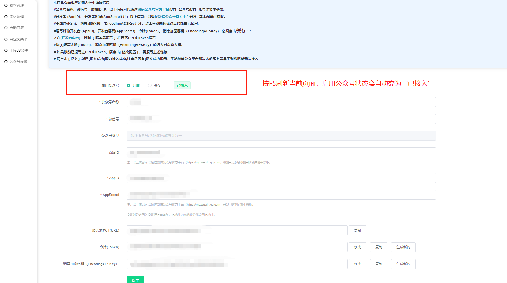 8、最后,返回系统后台–公众号设置–刷新一下页面。