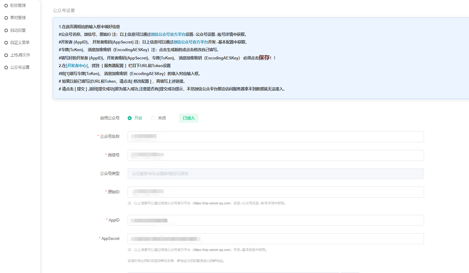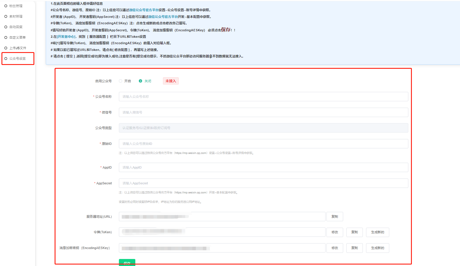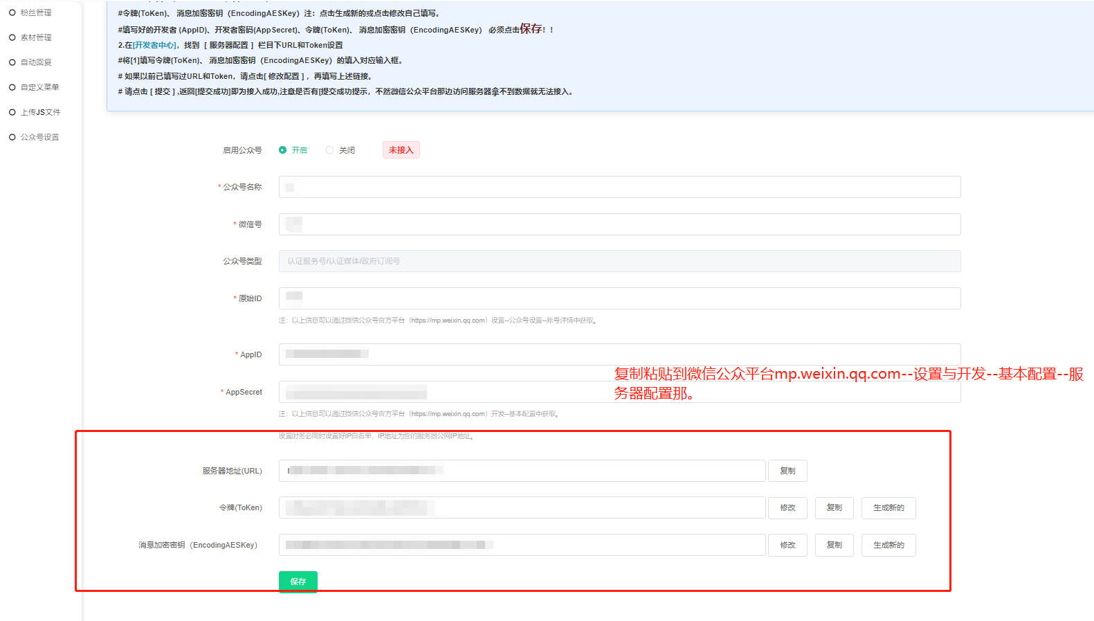 注意:如果公众号已经按照教程接入,但依旧是‘未接入’状态