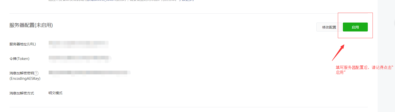 9、服务器配置设置完成之后一定要检查是否启用,如果没有点击启用系统无法推送消息。