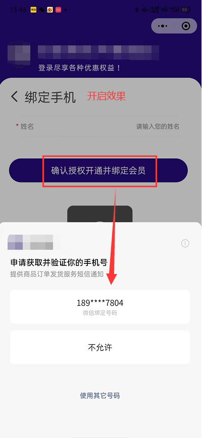 7)选择授权手机号显示:开启后可以直接使用微信公众平台的手机号快速验证组件授权验证绑定手机号,