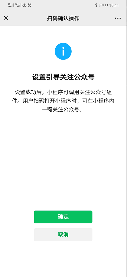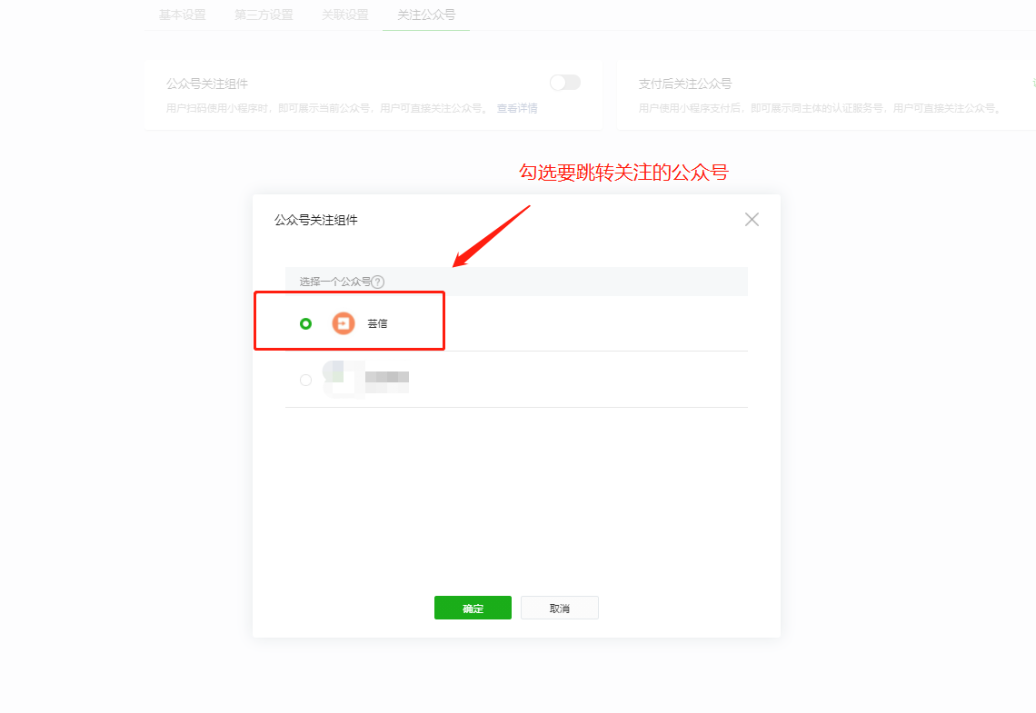 3、扫码确认后,勾选要跳转关注的公众号,并确认,则开启成功。