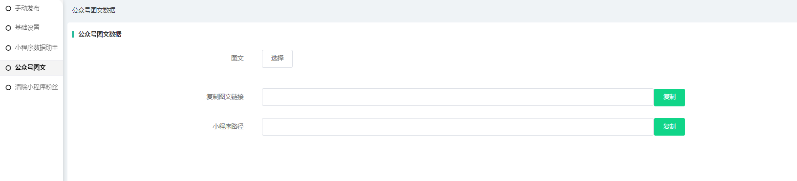 4、进入商城后台,在后台小程序公众号图文入口,选择公众号推文