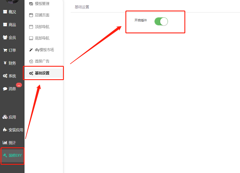 (二)接着,商城后台–装修DIY–启用小程序首页