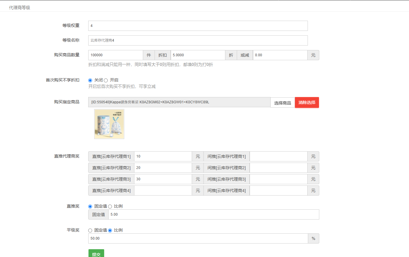 4. 云库存代理商级别不能设置10折,否则代理商去订货不会增加库存,没有折扣就不算是代理商订单。