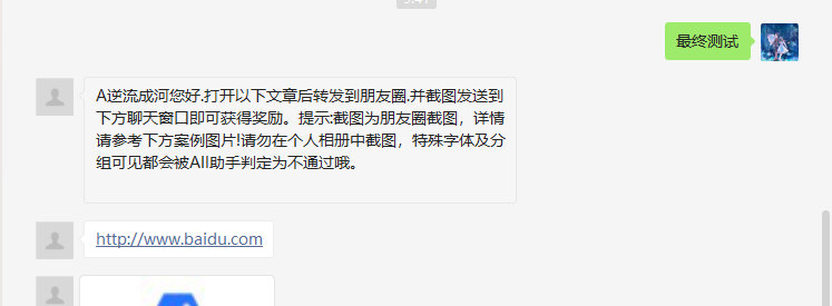 4. 当活动任务为分享链接时:扫码后公众号会发送链接,用户点击链接分享至朋友圈或者微信群,再截图上传到公众号获取奖励