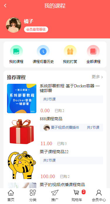 7、个人中心–课程中心–我的课程可以看到对应目录入口