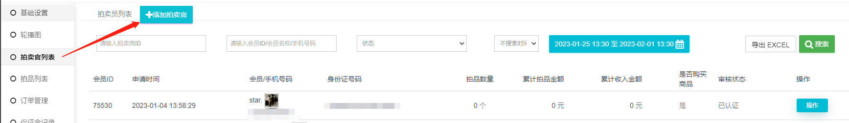 成为拍卖官有两个方法:会员前端自主申请、商城后台手动添加;