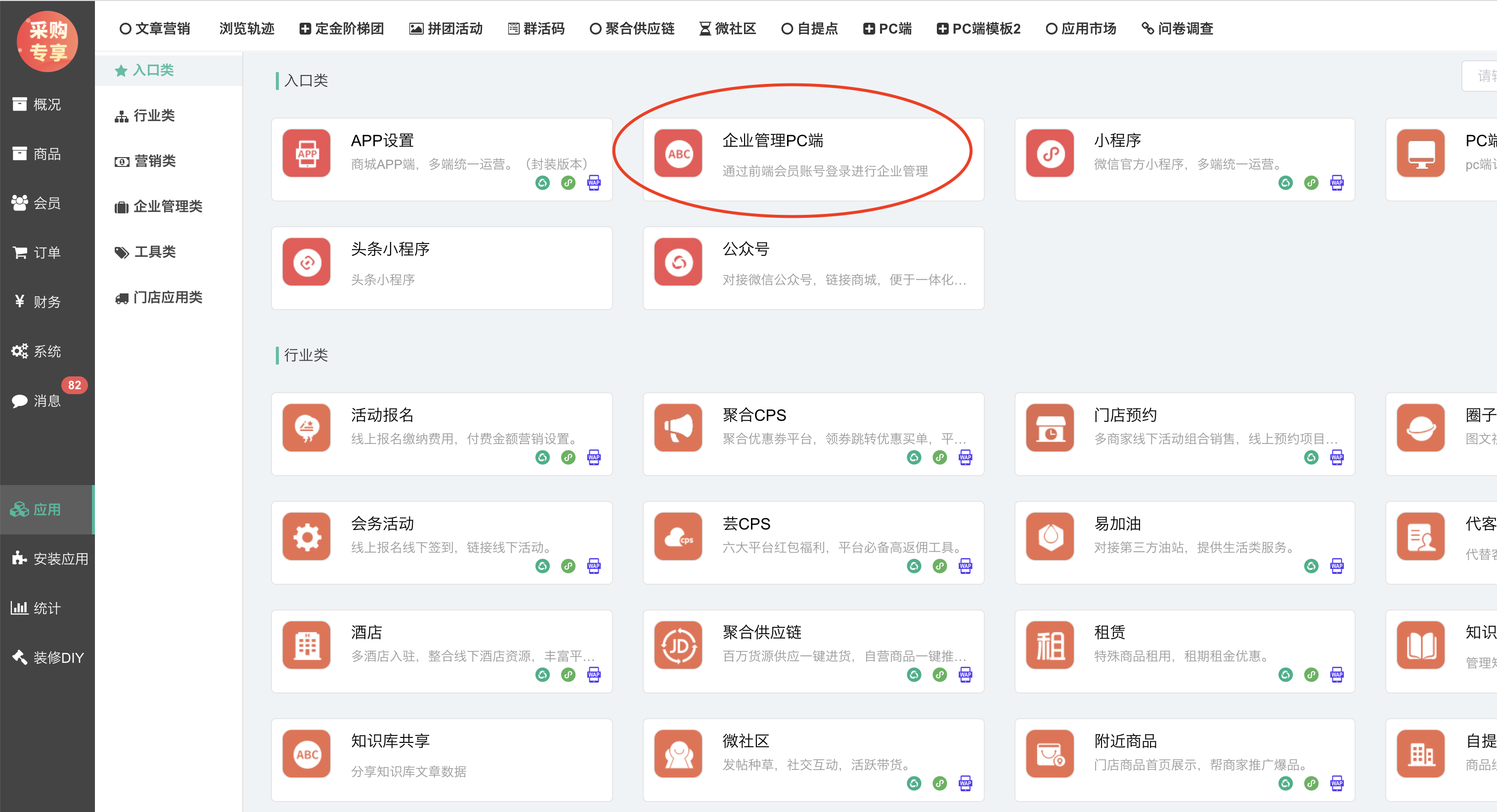 - 开启企业管理PC端:开启后,企业管理员、员工等可以通过登录链接,使用商城会员前端账号(手机号)、密码进行登录管理平台;