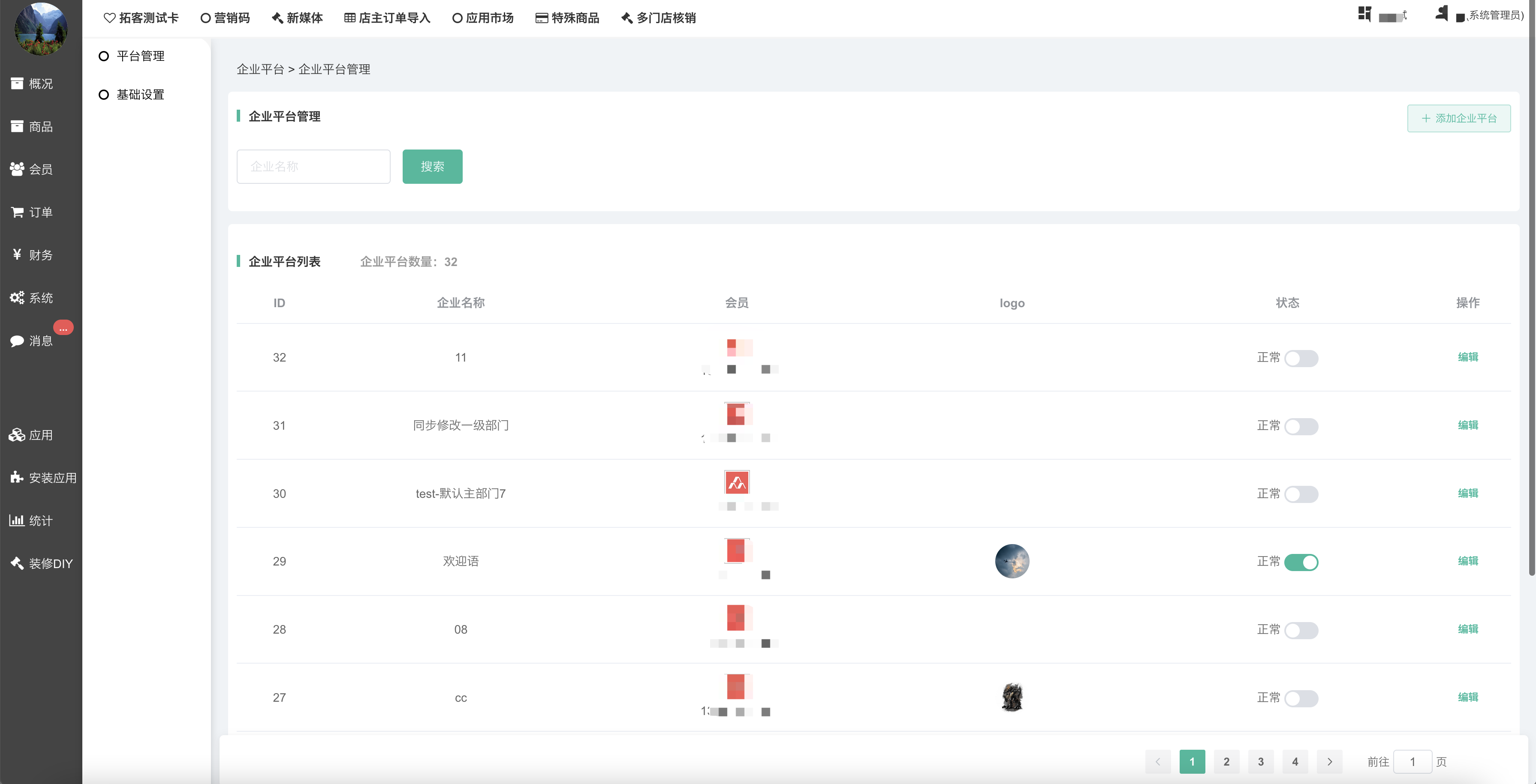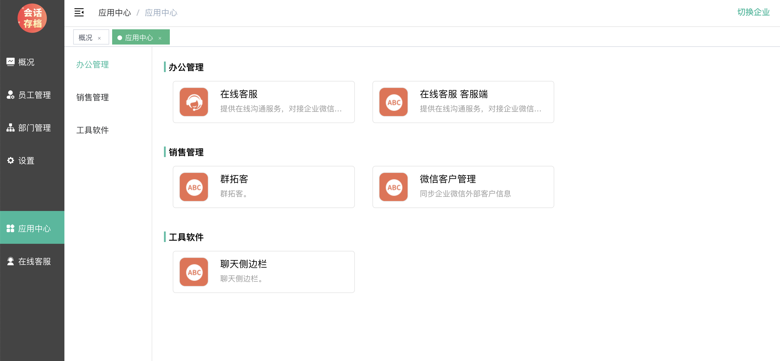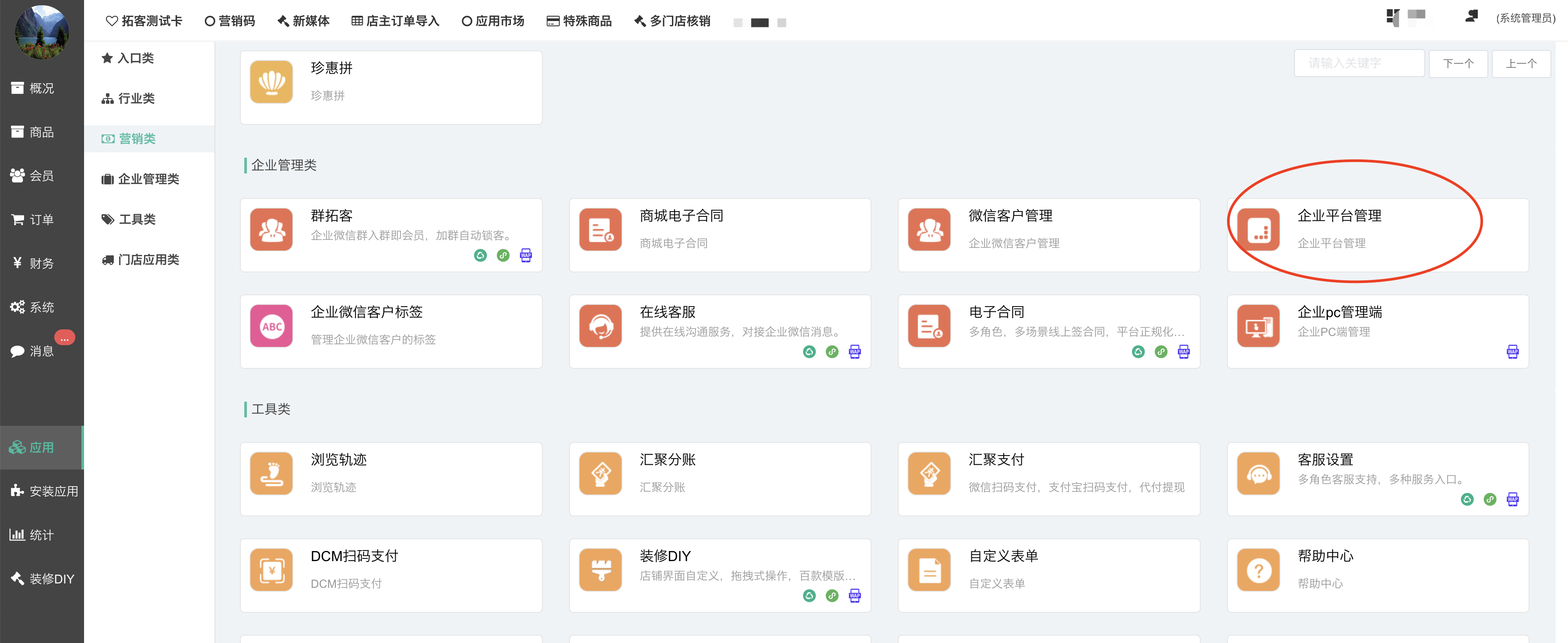 应用–企业管理类–企业平台管理插件进行企业管理;
