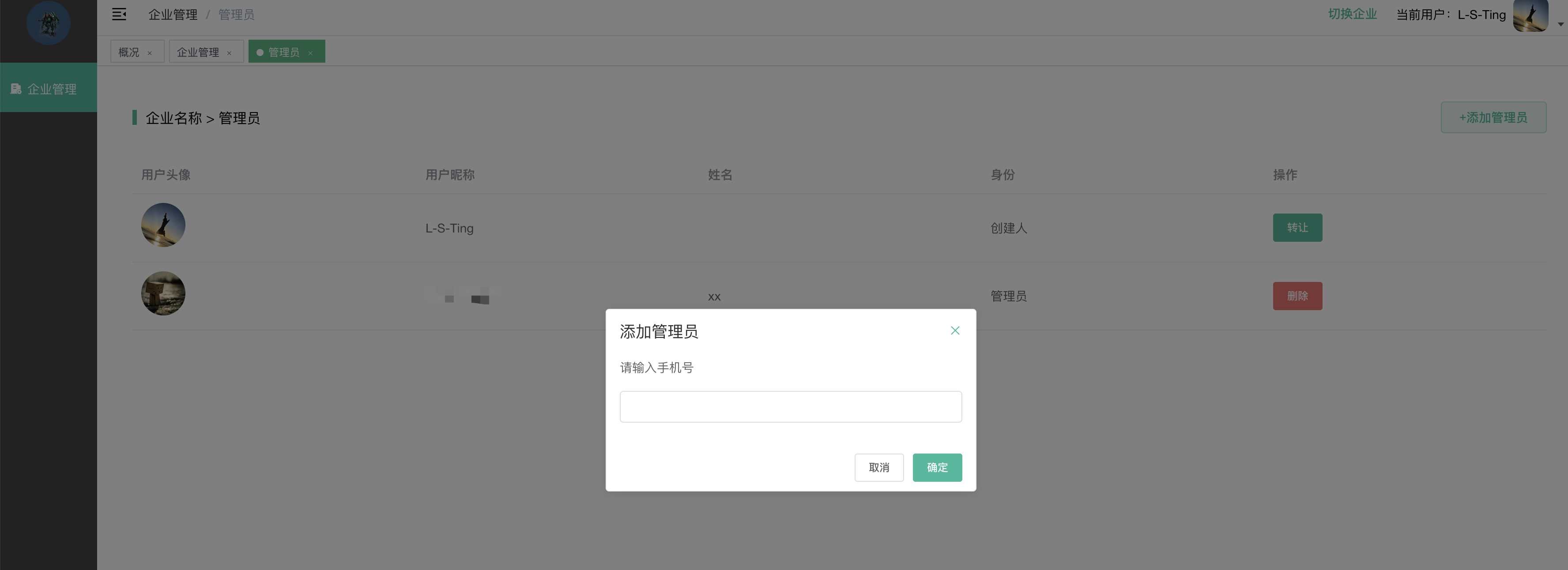 添加管理员,使用商城会员手机号进行添加,添加后该会员登录可以管理该企业