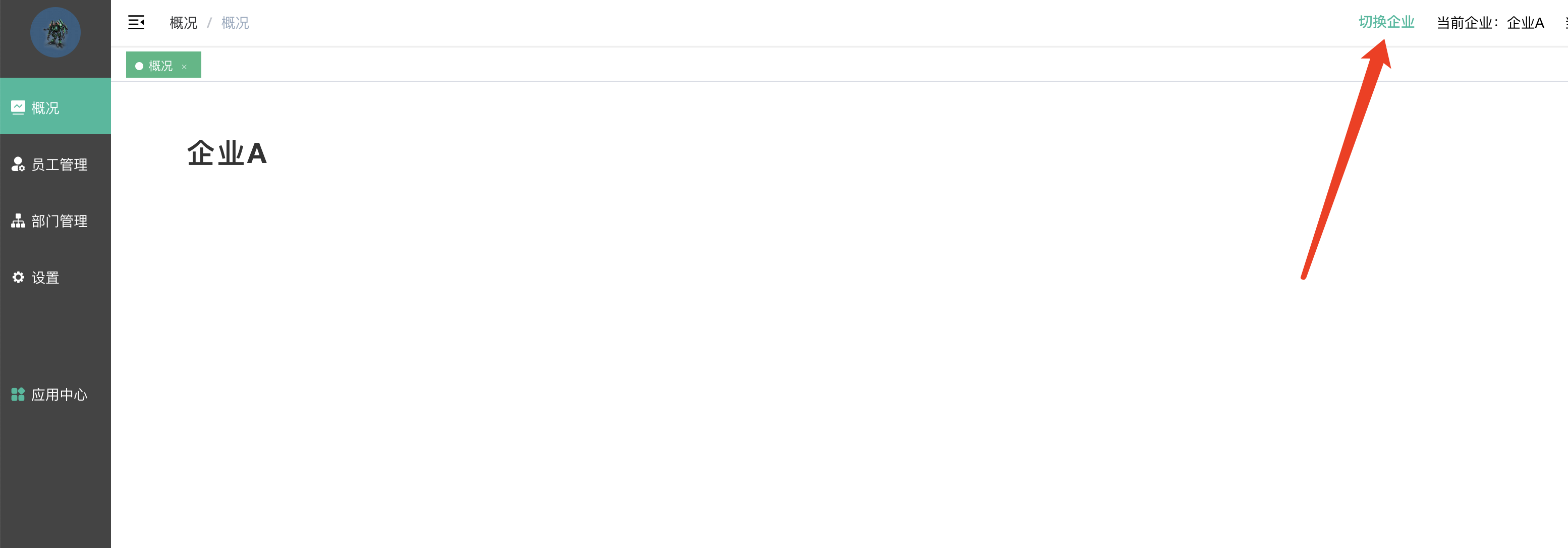 2、如果是二次登录,则自动进入上一次访问的企业,如果需要管理其他企业,需要点击切换企业: