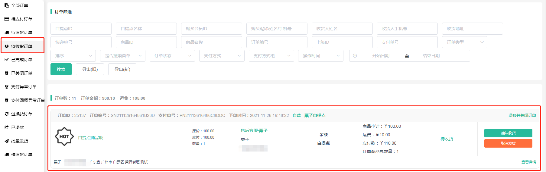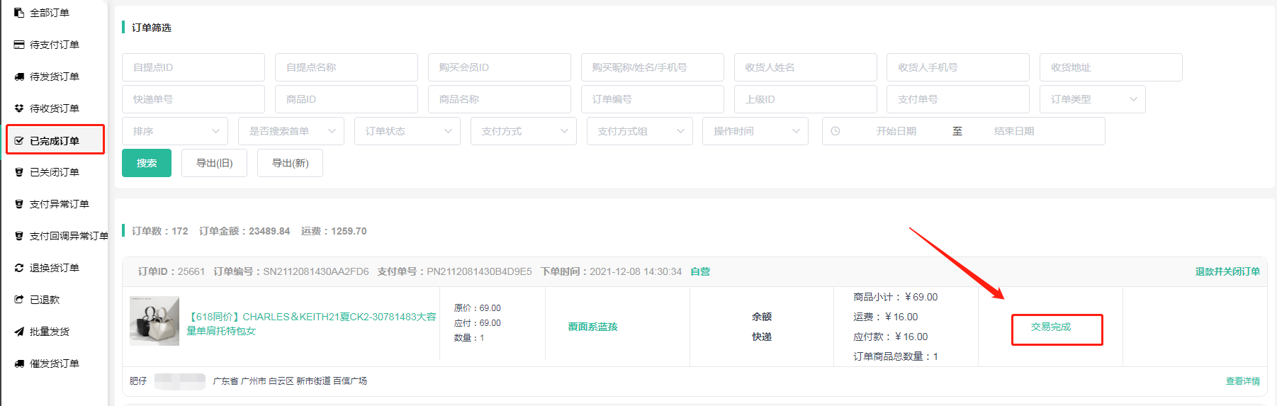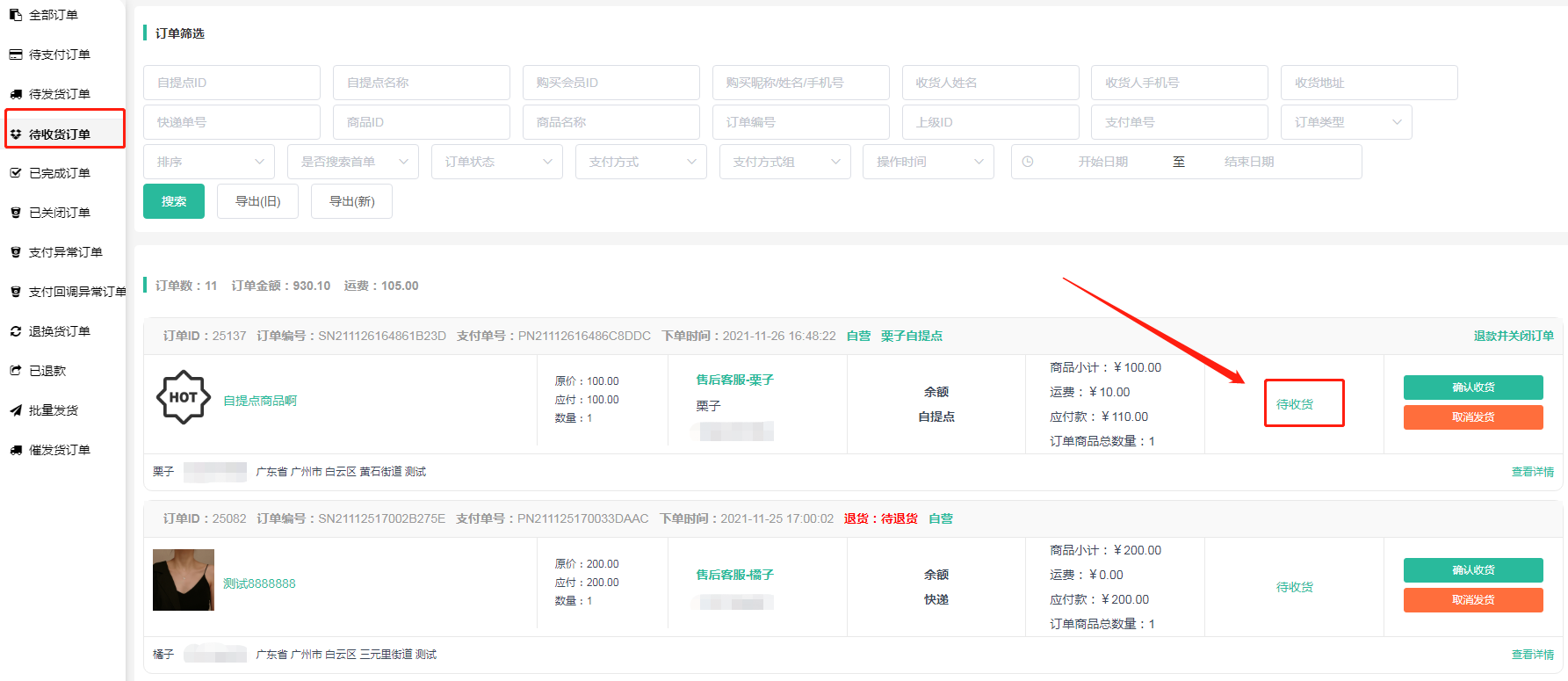等待商品到达买家手中,买家确认收货或者因为买家迟迟不确认收货,那么商家也可以在后台执行确认收货操作
