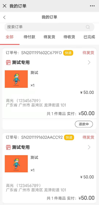 6、买家在商城选择购买商品,提交订单且未付款并取消,订单会变为“已关闭”状态,商家可在“后台–订单管理–已关闭订单”中查看相应订单。