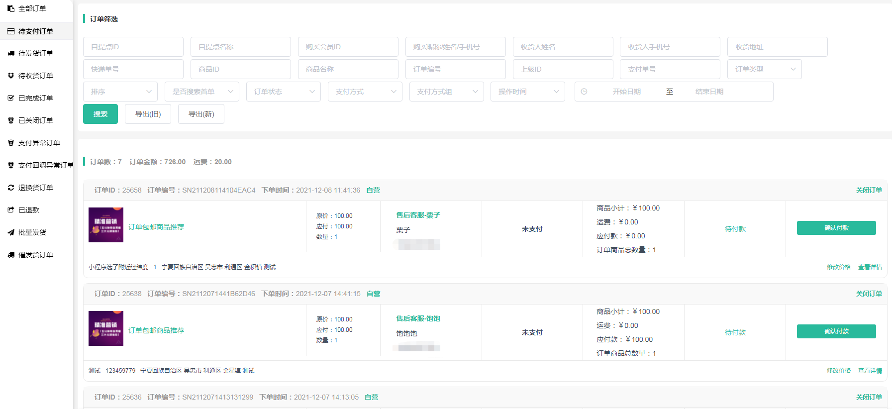 ⑴ 在订单管理–待支付订单–查看待支付订单–买家可以通过商家帮助在后台确认付款,亦或者买家在前端确认付款:
