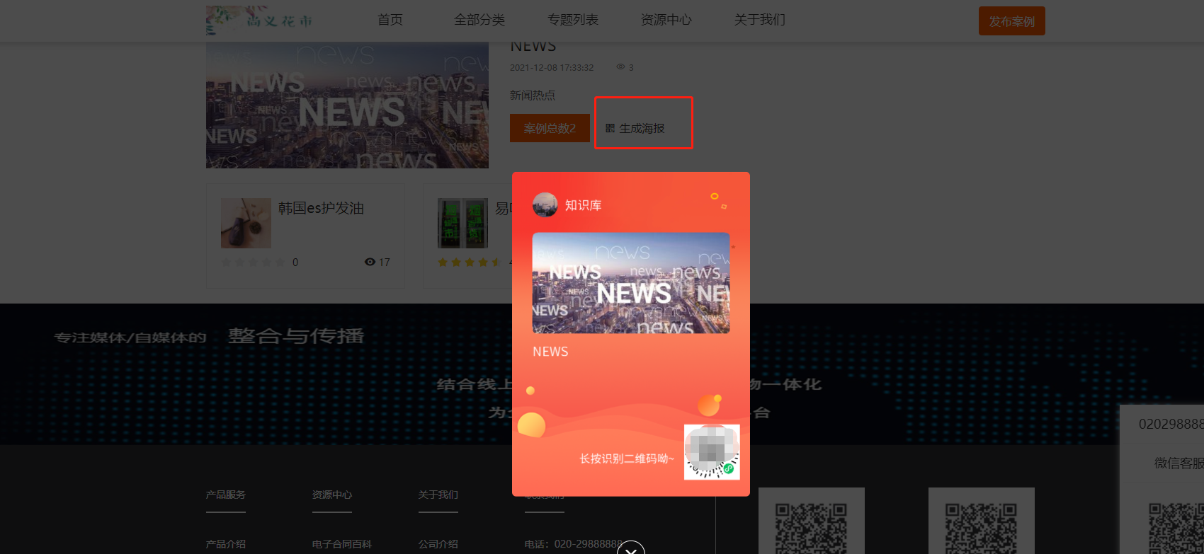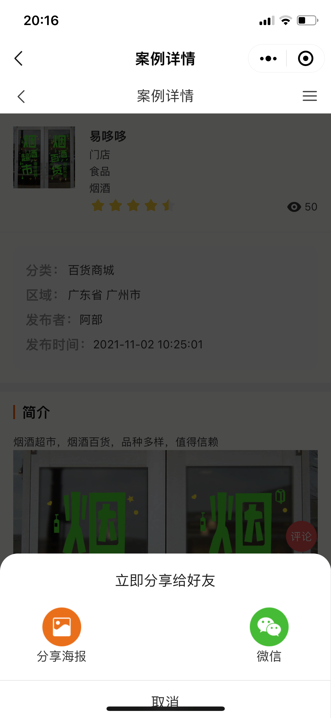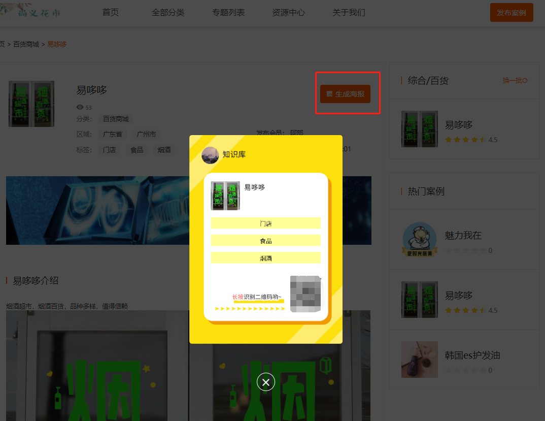 案例详情–生成案例专属海报(仅生成H5商城码)