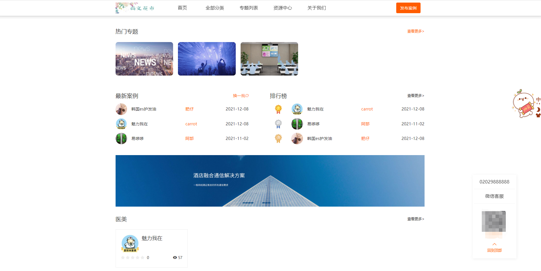 3、聚合页按钮组件:显示最新案例、全部分类、排行榜、区域案例,这些按钮不支持自定义更换图片和修改文字