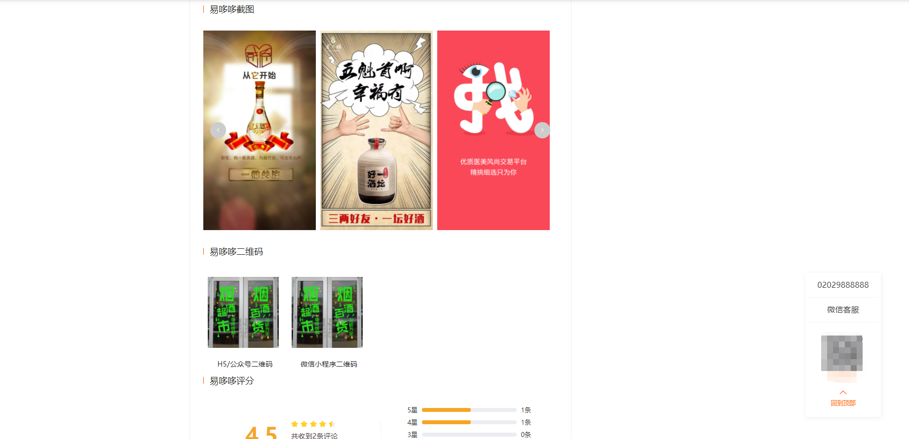 7、客服咨询入口:显示客服电话、客服二维码