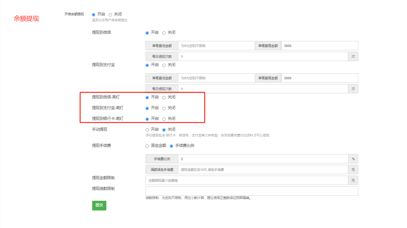 三、高灯提现基础设置