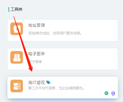 (一)应用中心–工具类–高灯提现