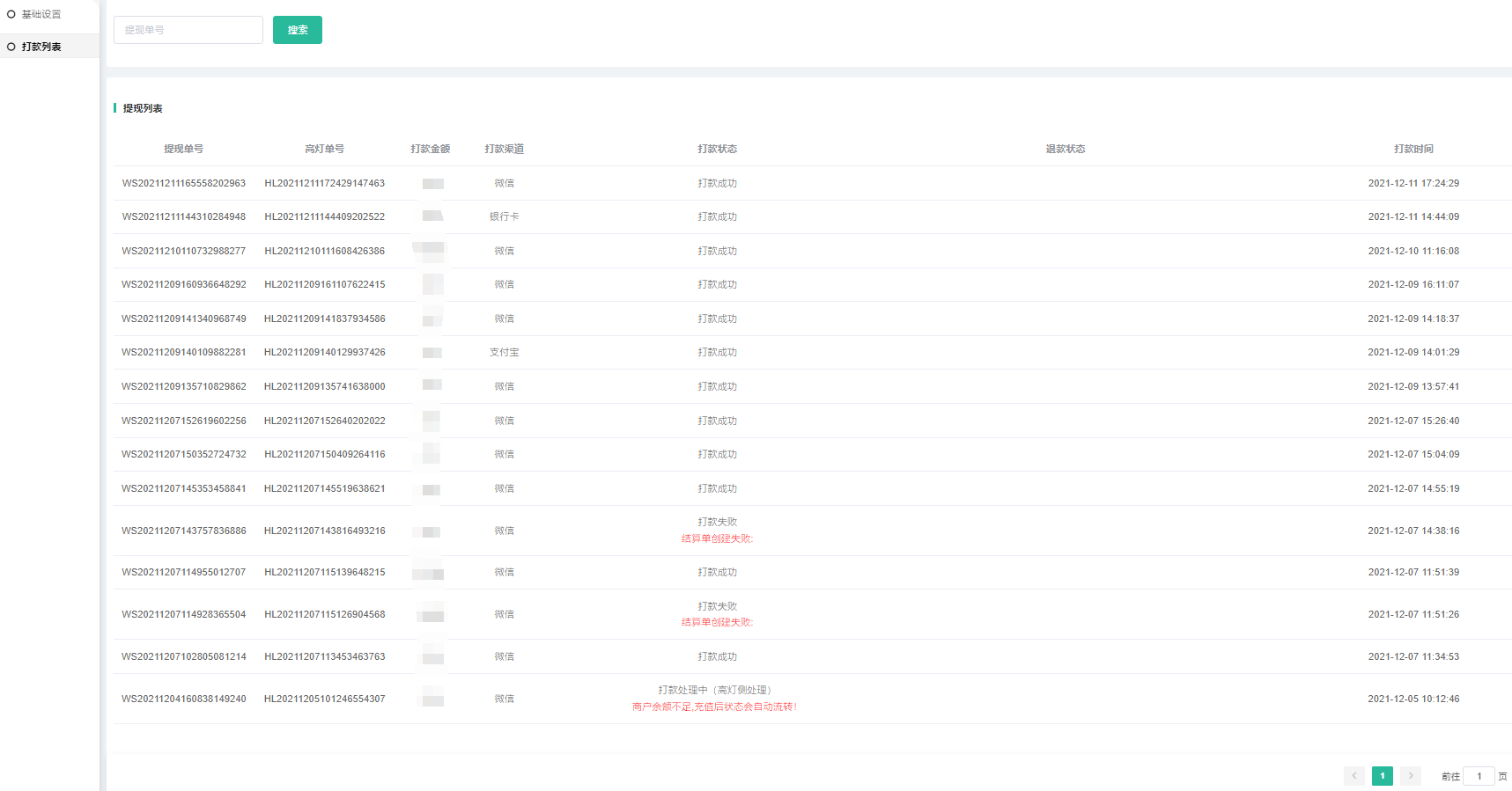 (三)打款列表