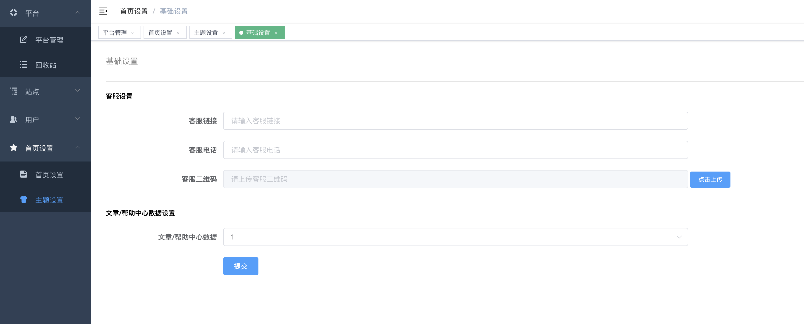 文章/帮助中心数据:选择一个平台,如果该主题页面需要调用文章、帮助中心列表数据的,显示选中平台的数据;