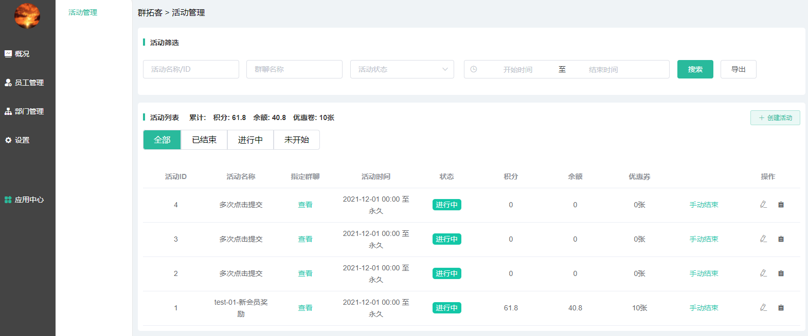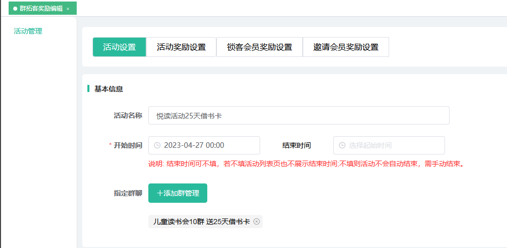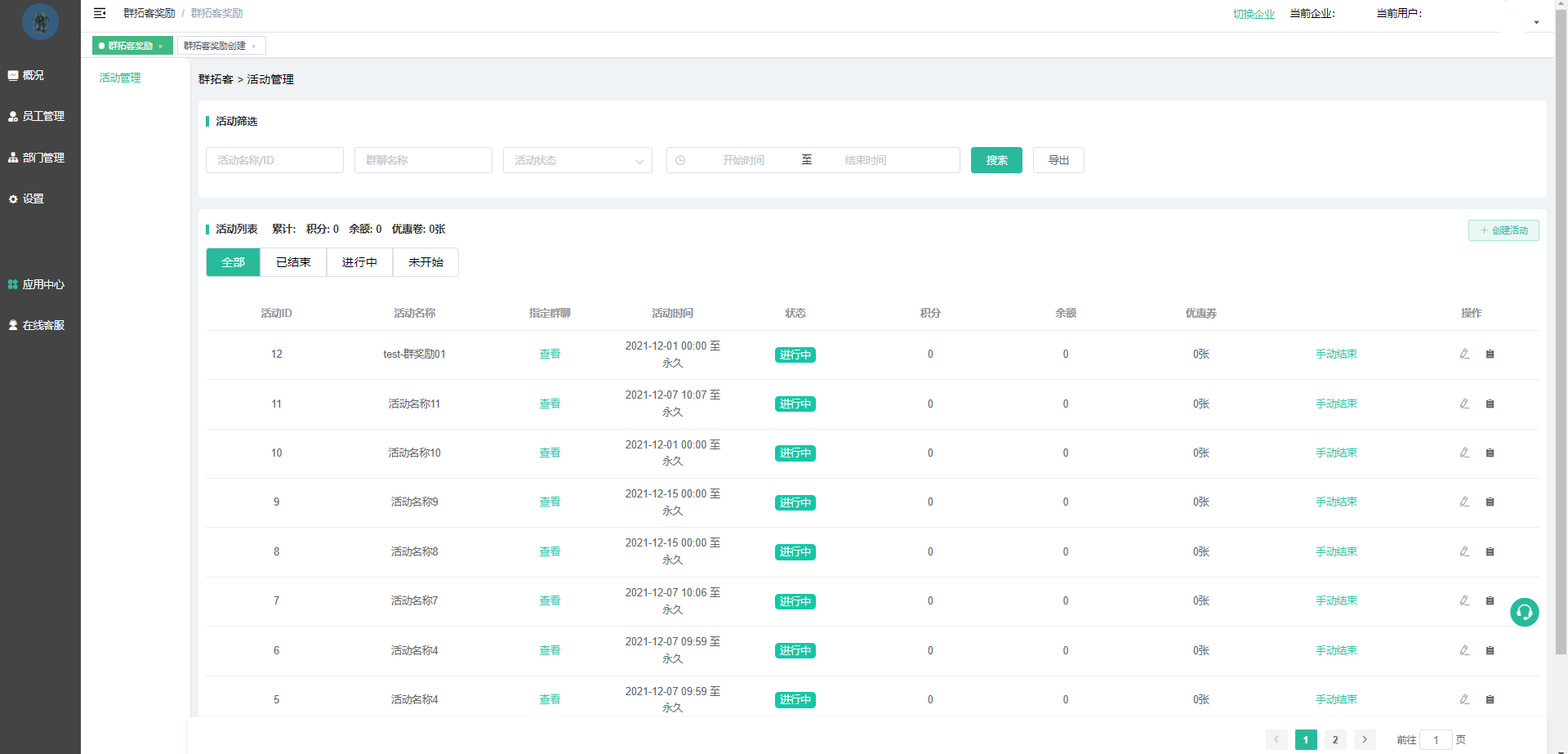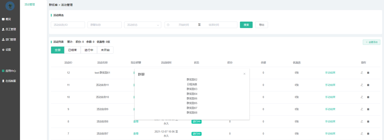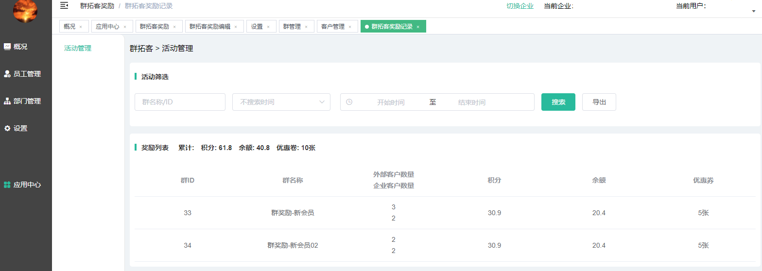 2、登录企业管理平台–应用中心–群拓客奖励—活动管理