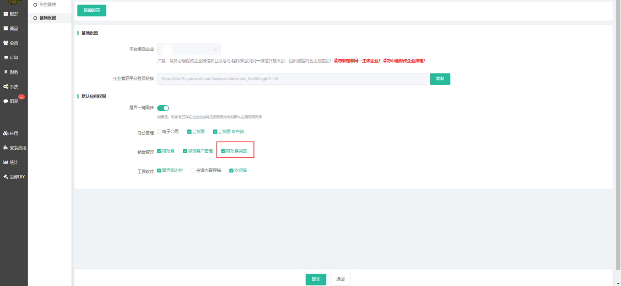 后台–应用–企业管理平台—>勾选群拓客奖励应用权限