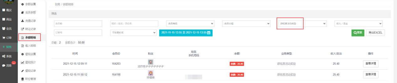 财务—余额明细—业务类型:增加“群拓客活动奖励”