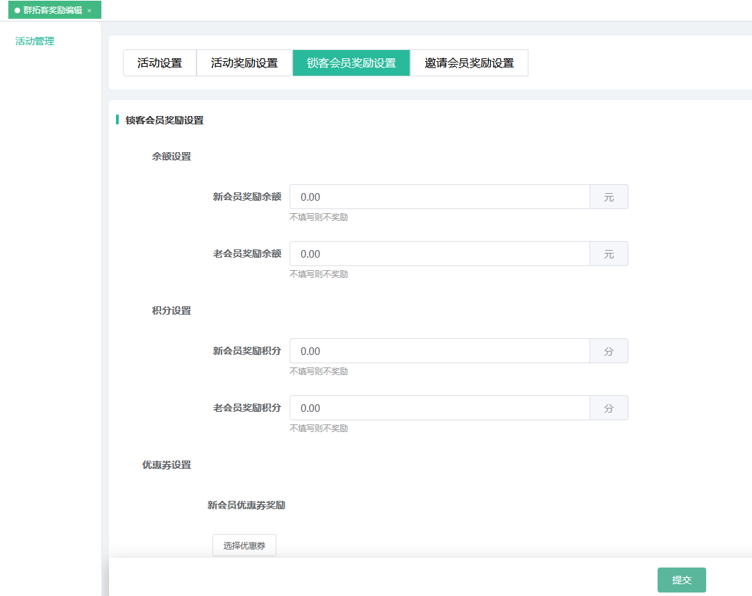 创建活动设置奖励,企业微信成员邀请微信客户进入群后,系统发放活动奖励奖励给进群的会员,锁客会员奖励和邀请会员奖励给邀请人。一个群奖励一次。
