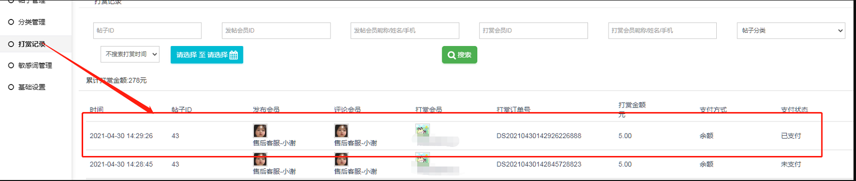 微社区 评论增加上传图片功能,评论者打赏功能作者: aishidai / 2025年11月21日 一、 评论增加上传图片功能 二,增加打赏评论者功能,打赏的金额结算到收入,前端会员可以在收入明细中查看,后台打赏记录也会有显示1,开启评论打赏 2, 前端打赏评论者 3,会员在收入明细中查看打赏金额 4,微社区插件打赏记录也会有显示