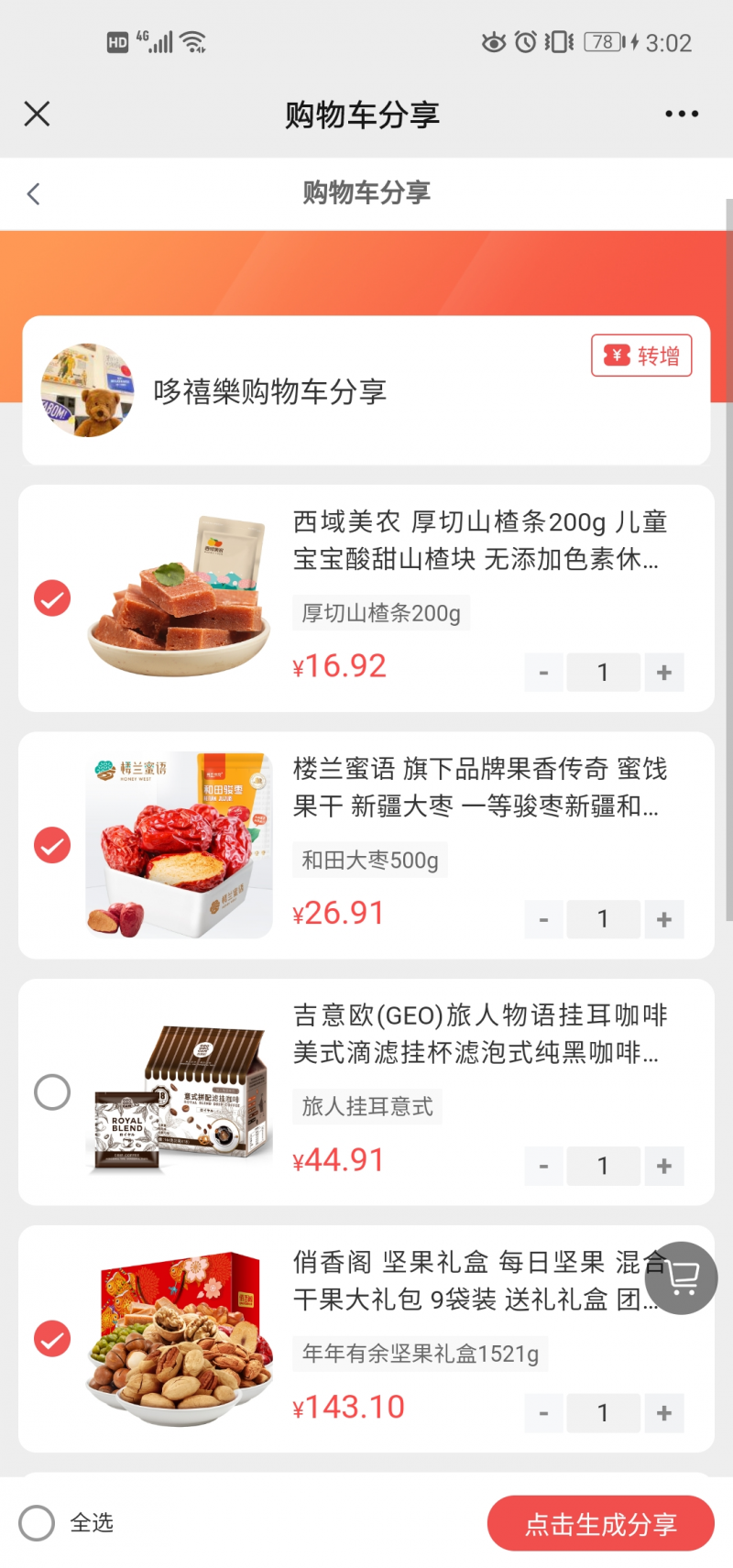 比如工作比较繁忙的人,用户可以邀请朋友或家人来帮助自己挑选,选择合适的商品加入购物车,然后再分享给自己,由自己下单购买。